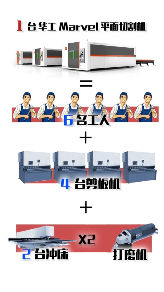 “ 我主要服務于重工行業,材料體量大,效率要求高,而華工設備能讓我效率和產能都提升2倍,讓我接大單急單也不怕!”